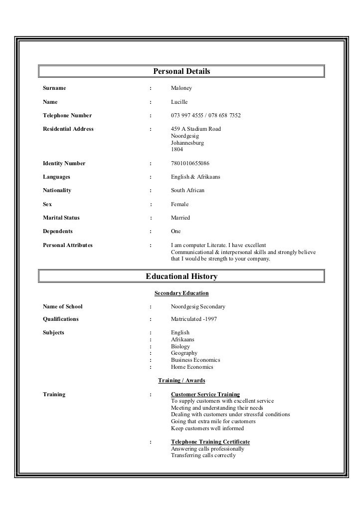 Curriculum Vitae Examples In Afrikaans